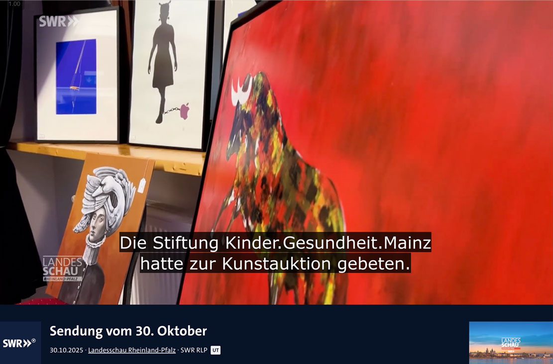 Hier geht’s direkt zum Report der Landesschau vom 30.10.2025 (Video verfügbar bis 30.10.2027). Die Sequenz zur Veranstaltung »Kunst hilft Kindern« dauert von Minute 11: 43 bis 12:21.